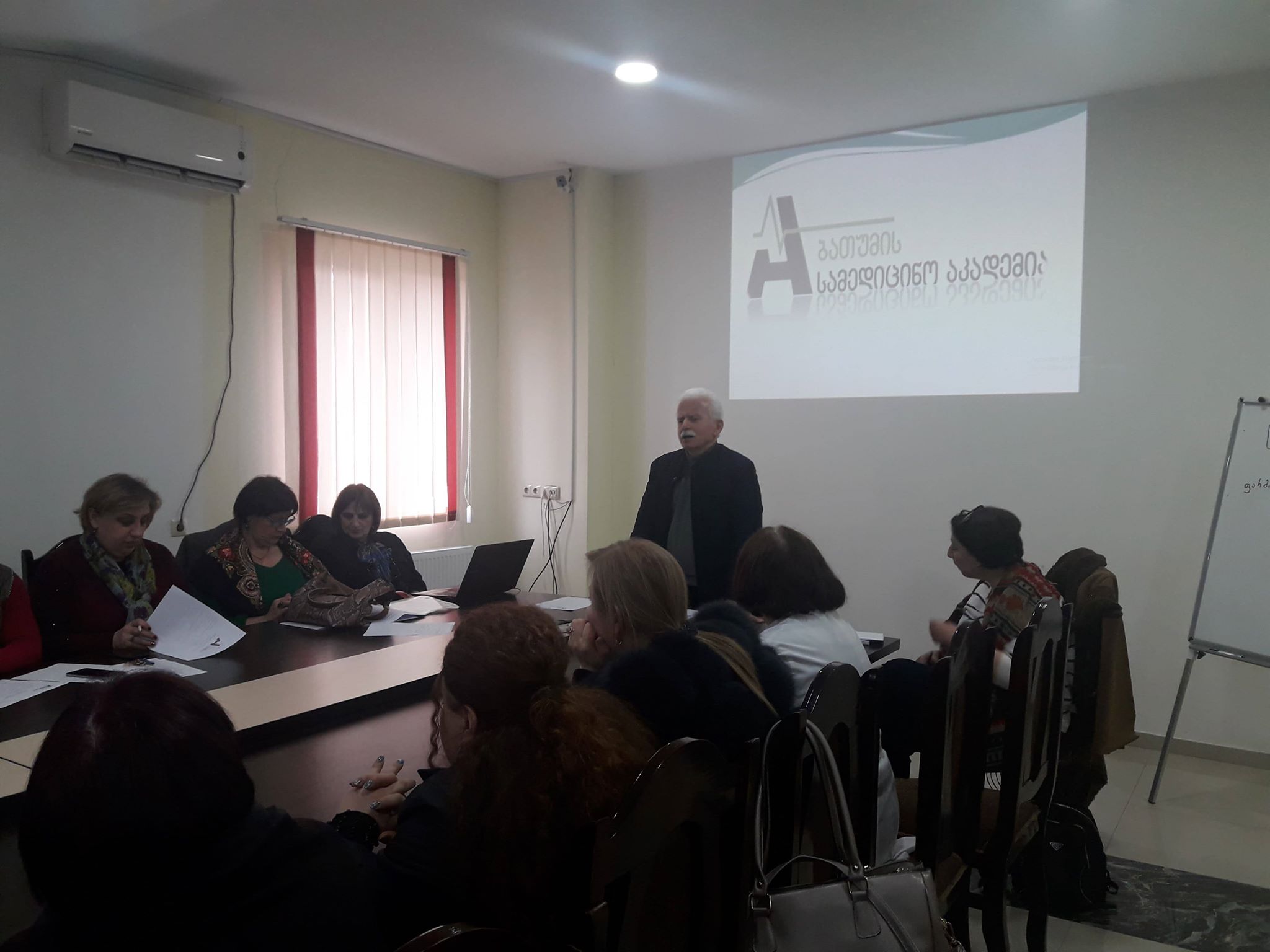 ავტორიზაციისათვის მზადების ფორმატში მოეწყო შეხვედრა ბათუმის სამედიცინო აკადემიის ადმინისტრაციულ და პროფესიულ მასწავლებელთა პერსონალთან. ავტორიზაციისათვის მზადებასთან დაკავშირებით გაწეული მუშაობის შესახებ დაწვრილებით ისაუბრა აკადემიის დირექტორმა რევაზ უზუნაძემ. მან აღნიშნა, რომ კმაყოფილია ჯგუფების მუშაობით. მათ გულდადებით, რუდუნებით იშრომეს, შეისწავლეს, გაანალიზეს და ავტორიზაციის სტანდარტებთან შეაჯერეს ყველა მომზადებული მასალა. დღევანდელ შეხვედრაზე განსაკუთრებული კმაყოფილებით მინდა აღვნიშნო ის ფაქტი, რომ სტანდარტების შესაბამისობის დამდგენმა ჯგუფებმა იმგვარი შედეგები წარმოადგინეს, რომლებიც სავსებით შეესაბამება ავტორიზაციის სტანდარტებს და იმ კრიტერიუმებს, რომლებითაც უნდა ხელმძღვანელობდეს პროფესიული საგანმანათლებლო დაწესებულება. დირექტორმა მადლობა გადაუხადა ჯგუფებს კეთილსინდისიერი, მუხლჩაუხრელი და ნაყოფიერი მუშაობისათვის. დასანერგი საგანმანათლბლო პროგრამების, შემუშავებული დოკუმენტაციის შესახებ დაწვრილებითი ისაუბრეს სტრატეგიული განვითარებისა და ხარისხის უზრუნველყოფის მენეჯერმა მზია ბაკურიძემ, დირექტორის მოადგილემ შორენა უზუნაძემ და სასწავლო პროცესის მართვის მენეჯერმა ინგა შალამბერიძემ. მზია ბაკურიძემ აღნიშნა, რომ დასანერგი პროგრამების შემუშავებას წინ უძღოდა შრომის ბაზრის კვლევა. შედეგმა გვიკარნახა დასანერგად მოგვემზადებინა ჯანდაცვის მიმართულების პროფესიული საგანმანათლებლო პროგრამები „საექთნო განათლება“ და „ფარმაცია (სააფთიაქო)“, ასოცირებული ექთნის და ასოცირებული ფარმაცევტის კვალიფიკაციით. პროგრამაზე მუშაობის პროცესში კავშირი გვქონდა პარტნიორ სამედიცინო და სააფთიაქო დაწესებულებებთან. მათთან გაფორმდა თანამშრომლობის მემორანდუმები, ხელშეკრულებები. მან განაცხადა, რომ პროგრამებზე მუშაობას წინ უძღოდა კონსულტაციები, ტრენინგებში ჩართულობა განათლების ხარისხის განვითარების ეროვნულ ცენტრსა და საქართველოს კერძო კოლეჯების ასოციაციასთან. დირექტორის მოადგილემ შორენა უზუნაძემ, სასწავლო პროცესის მართვის მენეჯერმა ინგა შალამბერიძემ შეკრების მონაწილეთ წარუდგინეს რედაქტირებული საგანმანათლებლო საქმიანობის მარეგულირებელი დებულება, სტრატეგიული განვითარების 6 წლიანი და ერთწლიანი სამოქმედო გეგმები, შინაგანაწესი და სხვა სამართლებრივი დოკუმენტები. მონაწილეებს გააცნეს აკადემიის ახალი მისია, ხედვა და ღირებულებები. აღინიშნა, რომ აკადემიის წარმატებული მუშაობისათვის მეტად