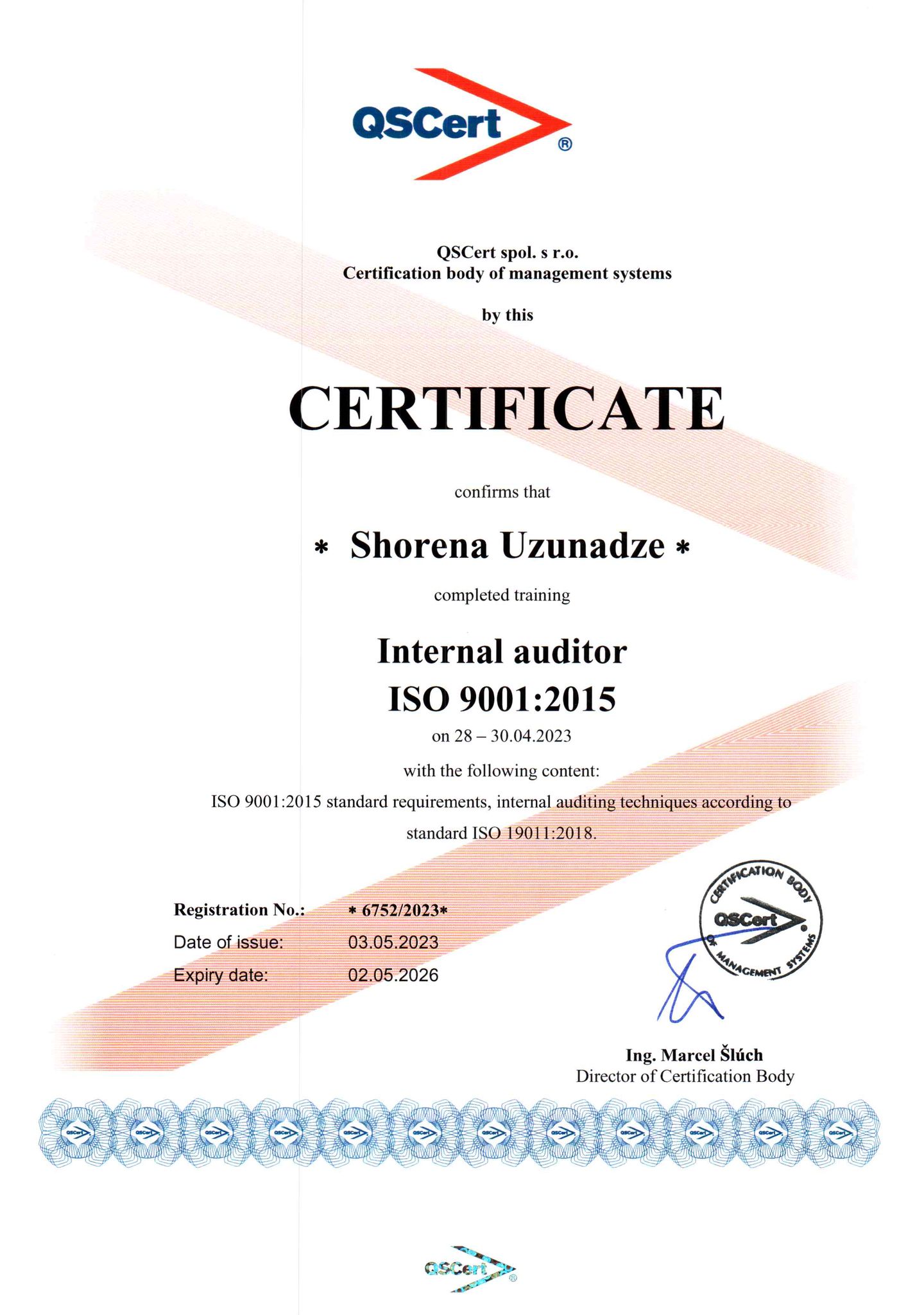 ISOსერტიფიკატი - შორენაუზუნაძეს